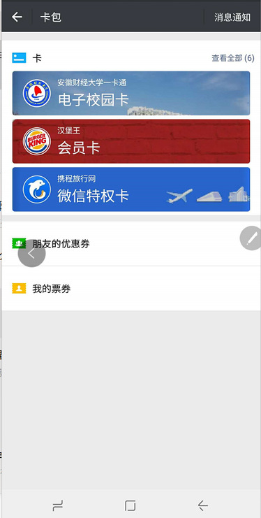 2、如在虚拟校园卡主界面已经“领取电子校园卡到卡包”的可以在微信卡包中进入。